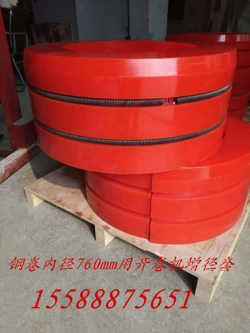 佛山縱剪開平機(jī)廠家配套聚氨酯漲芯膠套是一種適用于鋼卷內(nèi)徑610mm、730mm、760mm用的開卷機(jī)增徑膠套,寬度可根據(jù)客戶需要定制,產(chǎn)品規(guī)格齊全!所采用的聚氨酯材質(zhì),使增徑套具有較高的機(jī)械強(qiáng)度和氧化穩(wěn)定性,耐磨性佳,回彈性好!