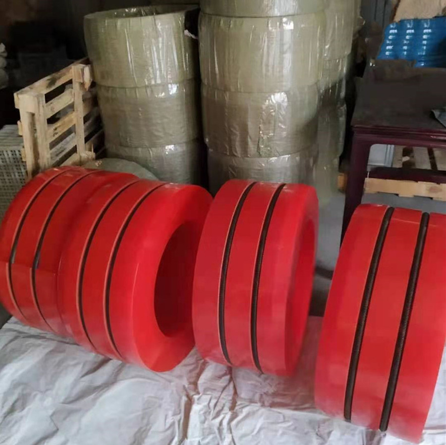 新型聚氨酯優(yōu)力膠開(kāi)卷收卷放卷機(jī)漲縮變徑膠套使用方法:聚氨酯增徑套在鍍鋅卷板(開(kāi)卷、收卷)設(shè)備,鍍錫設(shè)備,涂層設(shè)備,精整設(shè)備,檢測(cè)設(shè)備,切割設(shè)備廣泛使用。聚氨酯增徑套最大的作用就是大大提高了帶材的質(zhì)量(不會(huì)因?yàn)殇摼頁(yè)p傷出現(xiàn)次品)。 新型聚氨酯優(yōu)力膠開(kāi)卷收卷放卷機(jī)漲縮變?cè)鰪教卓梢栽诙虝r(shí)間內(nèi)實(shí)現(xiàn)不同鋼卷內(nèi)徑的快速更換,為企業(yè)節(jié)省和降低成本。由于聚氨酯增徑套筒保護(hù)了帶鋼的邊緣,降低或消除了帶鋼壓痕的產(chǎn)生,使帶鋼的質(zhì)量得到極大的提高。由于聚氨酯大分子中含有的基團(tuán)都是強(qiáng)極性基團(tuán),而且大分子中還含有聚醚或聚酯柔性鏈段,使得聚氨酯增徑套具有較高的機(jī)械強(qiáng)度和氧化穩(wěn)定性,耐磨性佳,硬度范圍寬廣可調(diào),抗撕裂性,彎曲強(qiáng)度高,抗張強(qiáng)度及斷裂延伸率大;還具有較高的柔曲性、回彈性、優(yōu)良的耐油性、耐溶劑性、耐水性和耐火性。