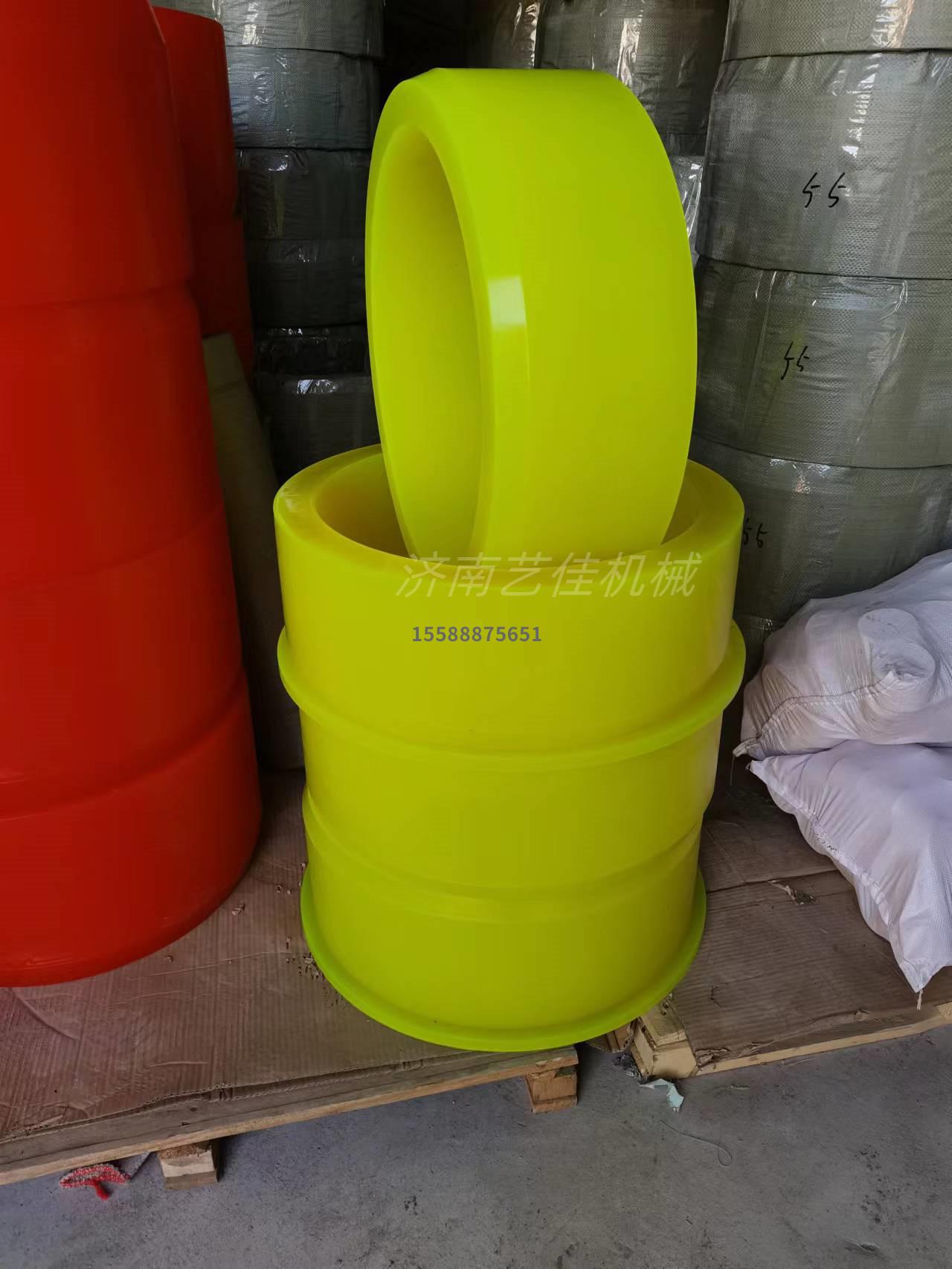 工廠在進(jìn)行金屬卷材加工業(yè)務(wù)時(shí),經(jīng)常會(huì)遇到卷材內(nèi)徑不一致的問(wèn)題,例如正常情況下,開(kāi)卷機(jī)上料卷筒加工內(nèi)徑為508mm的金屬卷板,直接用上料小車將鋼卷送至卷筒上面,漲開(kāi)即可操作,但是國(guó)標(biāo)卷材內(nèi)徑還有610mm、730mm、760mm等,卷筒最大卻也只能漲開(kāi)到515-520mm,那么這時(shí)該怎么辦呢?濟(jì)南藝佳開(kāi)卷機(jī)增徑套為您解決這方面難題。每個(gè)鋼卷內(nèi)徑尺寸都有相應(yīng)的開(kāi)卷機(jī)聚氨酯增徑膠套型號(hào)與之匹配,圖片如下,詳情咨詢15588875651、13969066363(微信同號(hào))